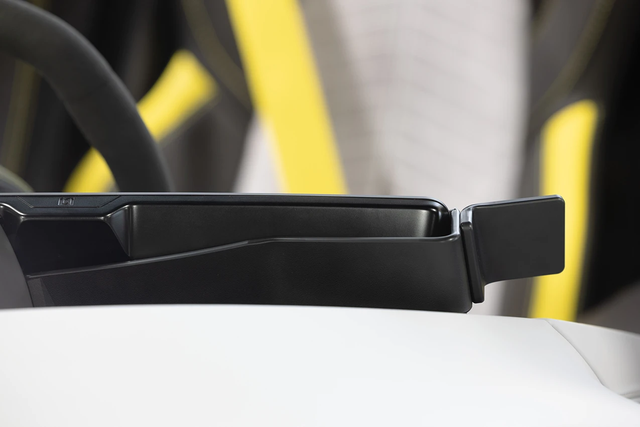 Press the angled edge on the right part of the ProClip into the gap between the instrument hood and the back of the screen.