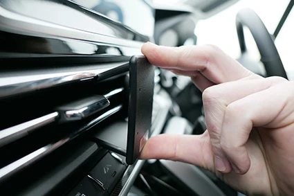 Hook the upper grooved edge of the ProClip under the frame surrounding the air vent.