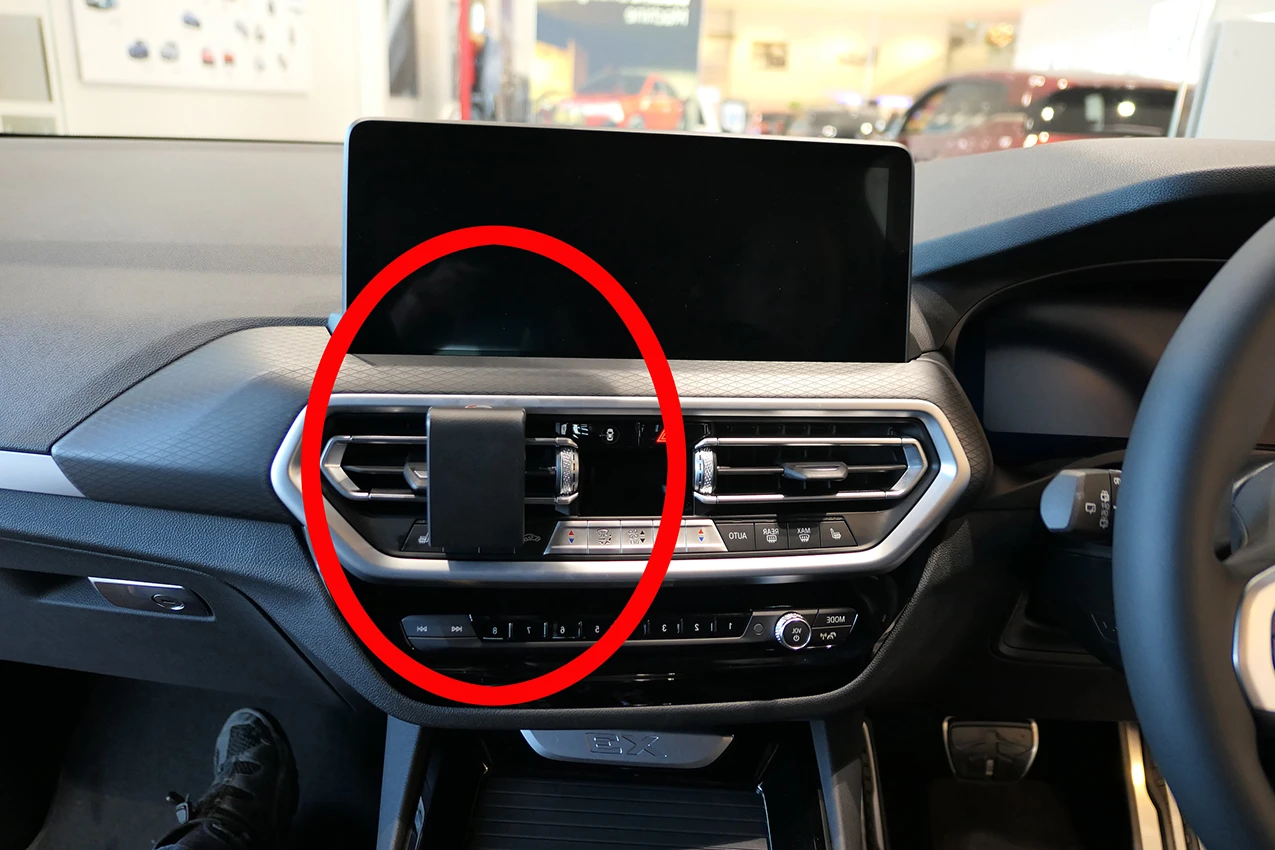 This ProClip can also be attached onto the right air vent. A device installed in this position may block the screen.