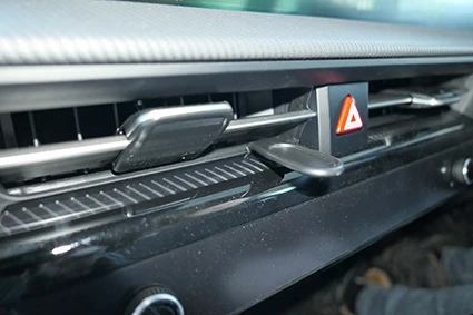 Press the angled thin edge of the enclosed gap opener into the gap between the frame surrounding the air vent and the trim, to widen the gap.