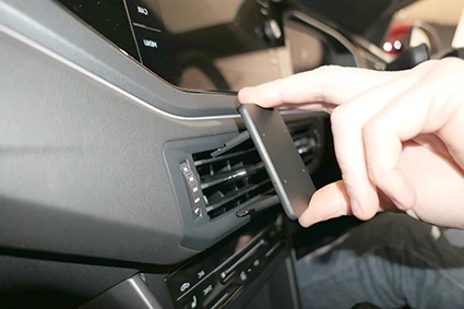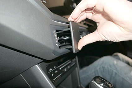 Press the lower part of the ProClip upward and forward. Hook the grooved edge on the lower part of the ProClip over the frame surrounding the air vent.