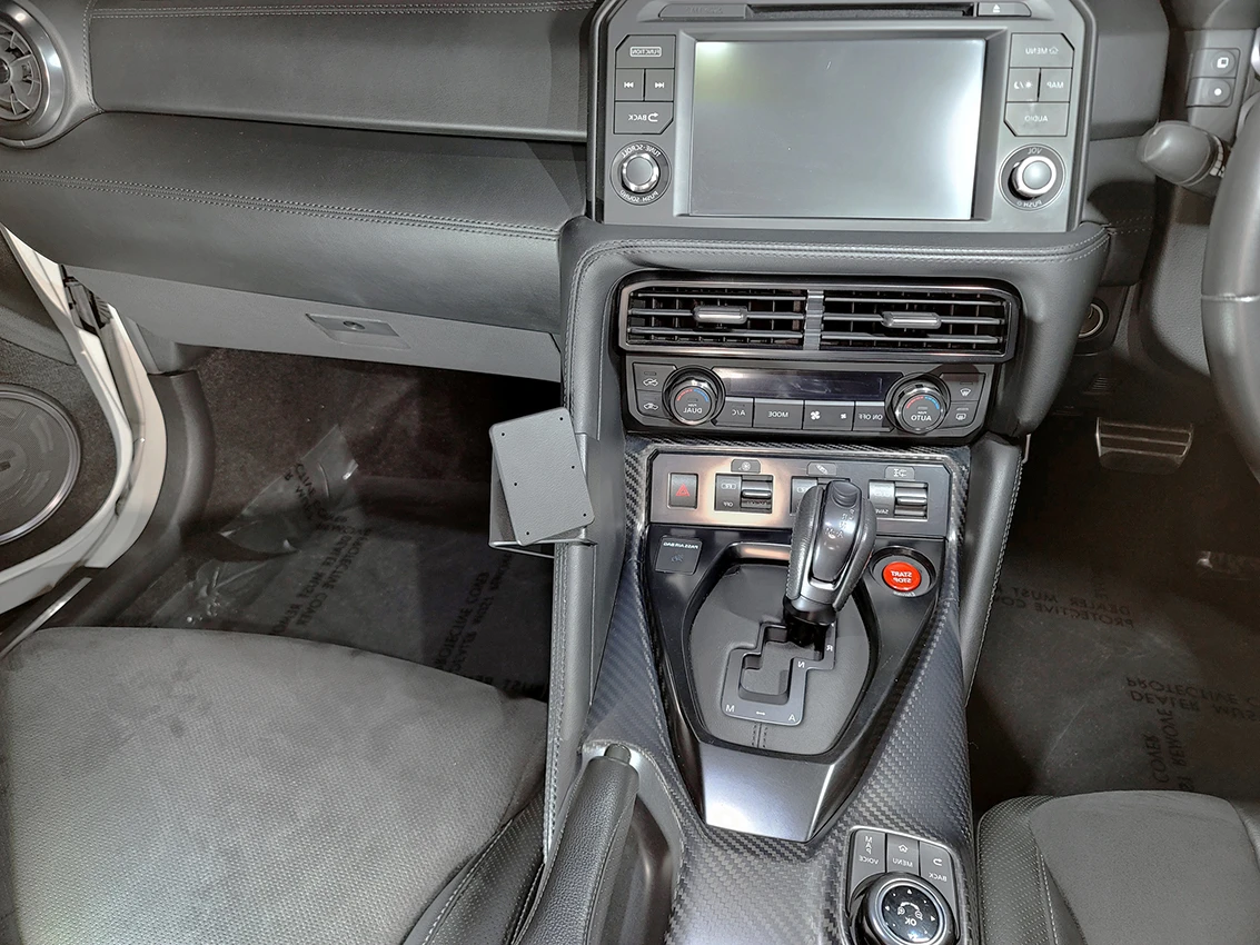 Flip the ProClip upward/rightward so the lower edge hooks behind the lower section of the center console sidewall.