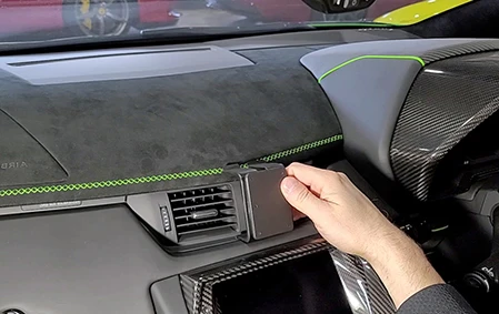 Press the upper part of the ProClip downward/forward. Press the upper edge into the gap between the frame surrounding the air vent and the dashboard.