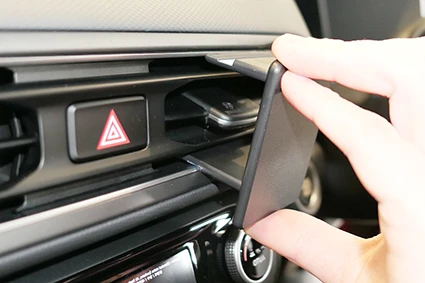 Press the upper part of the ProClip downward/froward and hook the upper grooved edge under the frame surrounding the air vent.