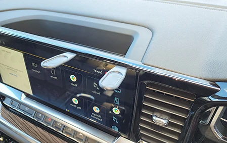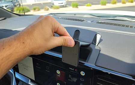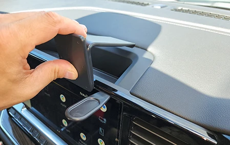 Press the thin end of the enclosed gap opener tools into the gap between the screen and the dashboard, to widen the gap. Leave enough room between the gap openers for the mount to fit.