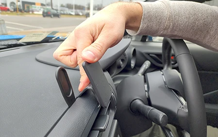 Keep your device within easy sight and reach in your car! The ProClip makes it easier and safer to use handheld devices in vehicles. The ProClip is a mounting bracket that you attach to the dashboard of your car. Onto the ProClip, you can install any accessory, e.g. a holder for mobile phone or other communication device.