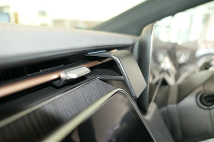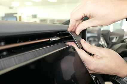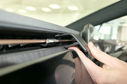 Use the enclosed alcohol pad to clean the area where the ProClip is to be installed. Peel off the adhesive tape covers on the ProClip. Press the upper part of the ProClip in the gap under the frame surrounding the air vent.