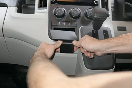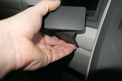 Pull the lower part of the ProClip downward and out from the dashboard. Hook the angled lower edge into the gap. If necessary, use a gap opener to widen the gap.