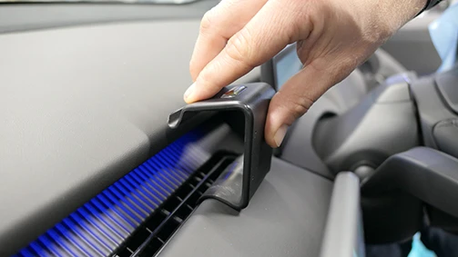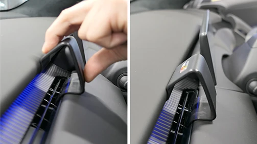 Press the angled bottom part of the ProClip into the gap between the frame surrounding the air vent and the center console.