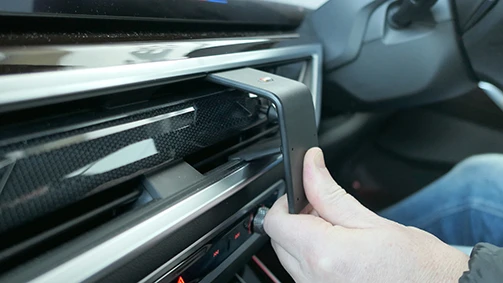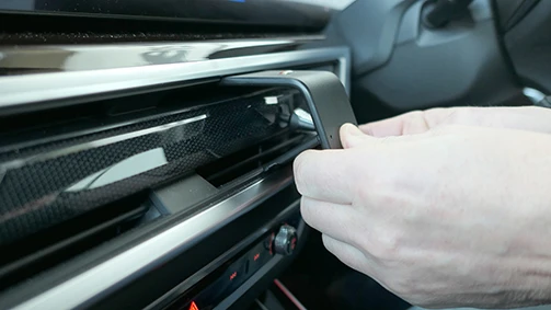 Hook the lower part of the ProClip over the frame surrounding the air vent. This ProClip can be attached by the right air vent. A device installed in this position may block the display.