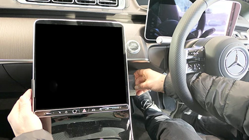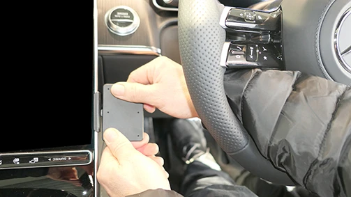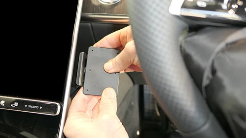 Slide the ProClip behind the screen and hook the angled edge of the mount around the left side of the screen.