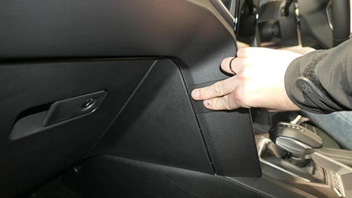 Press forward on the right side of the ProClip, so the angled edge hooks into the gap on the center console.