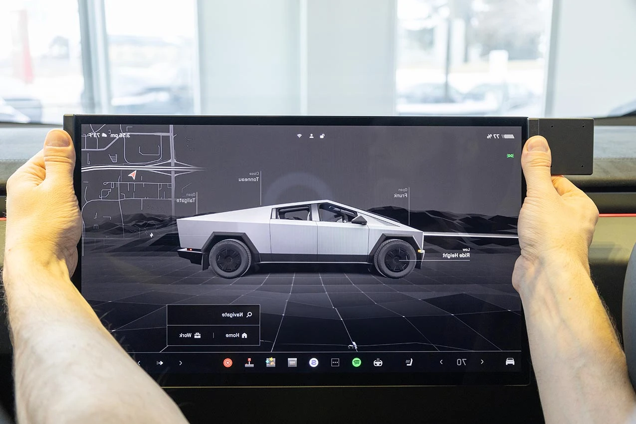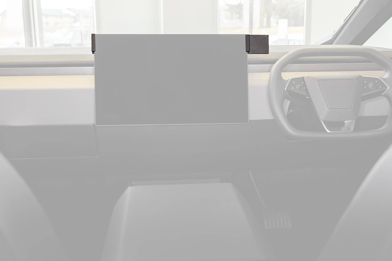 Place the mount over the screen so the face plate is on the driver's side of the screen. Flex the sides of the mount open, and slide it downward, over the screen. Press downwards on one side of the time and slide the mount downward until the top of the mount is flush with the top of the display frame.