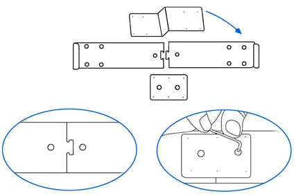 Fit the sides of the mount together. Place the joining plate on the mount and secure with the included screws.