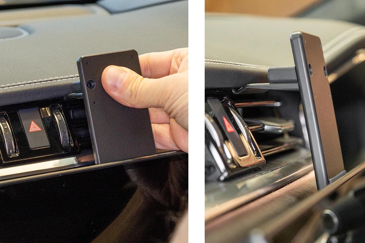 The ProClip is car specific, it is customized for each car model and has a perfect fit. The ProClip offers a firm mounting platform and is available in multiple positions for most vehicles. Discreet design that blends in well with the interior. Safe, neat and convenient!
