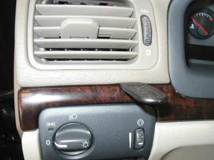 Press the thin end of the enclosed gap opener into the gap between the padded part of the dashboard and the wood grain panel, to widen the gap.