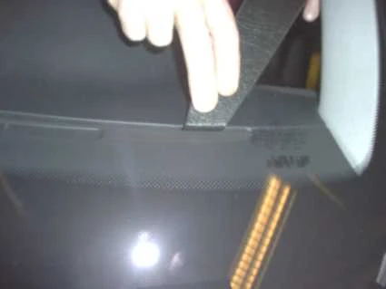 Press the lower part of the ProClip into the gap between the wood grain panel and the frame surrounding the air vent.