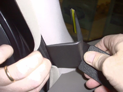 Peel off the adhesive tape covers on the ProClip. Pull out the rubber. Hook the angled edge of the ProClip around the edge under the rubber.