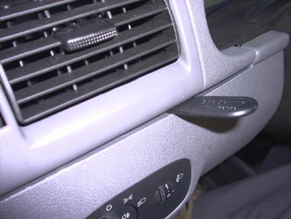 Place the ProClip under the gap between the air vent frame and the air vent housing. Press the angled upper edge upwards into the gap, start by pressing one corner into the gap and then press the ProClip all the way into the gap.