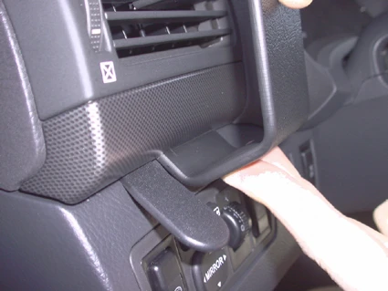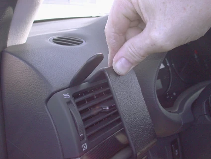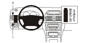 Press the gap opener into the gap between the air vent frame and the dashboard. Press the grooved edge on the upper part of the ProClip into the gap next to the gap opener. Press until you hear/feel it snaps into place. Pull out the gap opener.