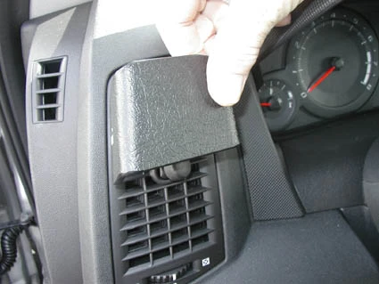 Press the grooved edge on the right side of the ProClip into the gap between the air vent frame and the dashboard. Press until you see or hear/feel it snaps into place.