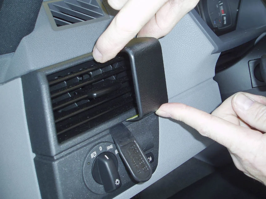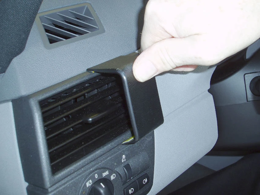 Press the angled edge in the upper part of the ProClip into the gap between the frame surrounding the air vent and the dashboard.