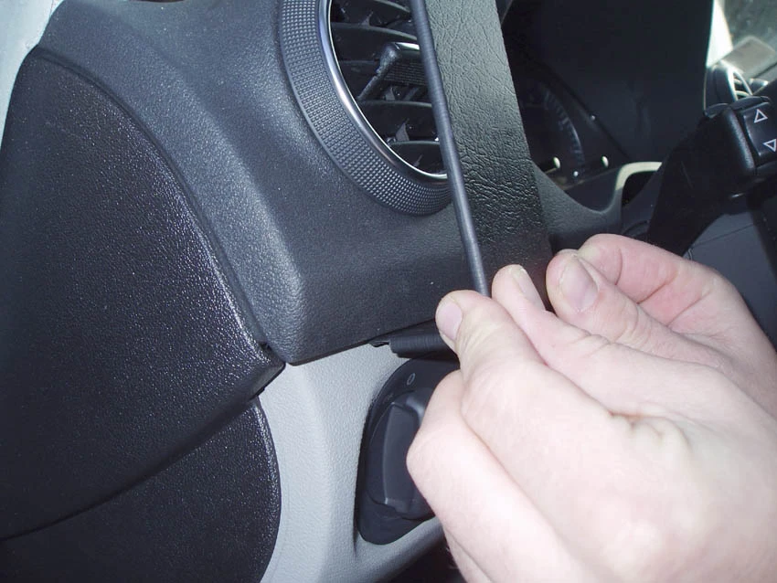 Pull the ProClip downwards and press the grooved edge into the gap in the dashboard.