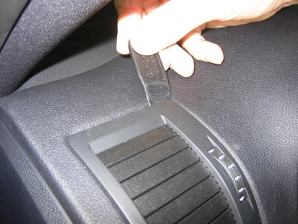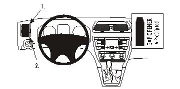 Press the gap opener into the gap between the frame surrounding the air vent and the dashboard. Prize the gap sligtly wider, in the same time press the grooved edge on the lower part of the ProClip into the gap next to the gap opener. Press until you hear/feel it snaps into place. Pull out the gap opener.
