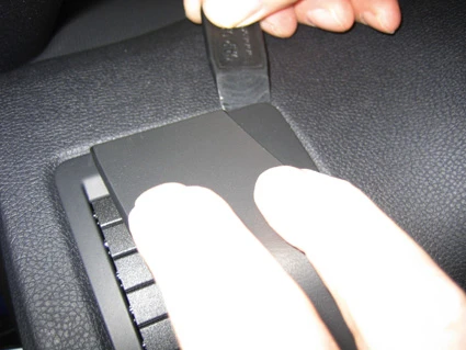 Press the thin end of the enclosed gap opener into the gap between the frame surrounding the air vent and the dashboard, to widen the gap. Peel off the adhesive tape covers on the ProClip.