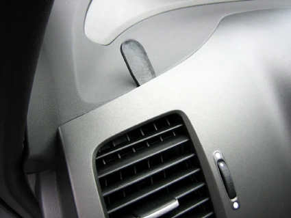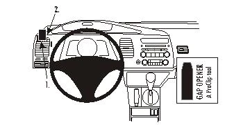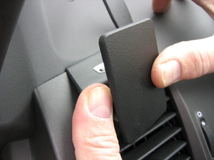 Press the thin end of the enclosed gap opener into the gap between the frame surrounding the air vent and the dashboard, to widen the gap. Peel off the adehsive tape covers on the ProClip.