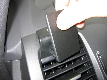 Hook the angled edge on the lower part of the ProClip under the fixed part of the air vent, as shown in picture.