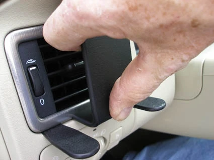 Press the thin end of the enclosed gap openers into the gap between the frame surrounding the air vent and the dashboard, to widen the gap.