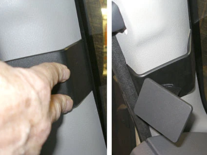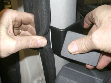 Press forward on the ProClip so the angled edge on the right part hooks behind the panel by the windshield.