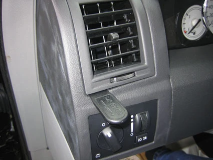 Press forward on the upper part of the ProClip so the angled edge goes into the gap between the frame surrounding the air vent and the dashboard. Press downward on top of the ProClip so the angled edge goes all the way into the gap.