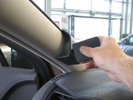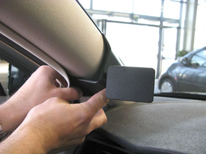 Hook the angled edge on the upper part of the ProClip around the A-post by the windscreen.