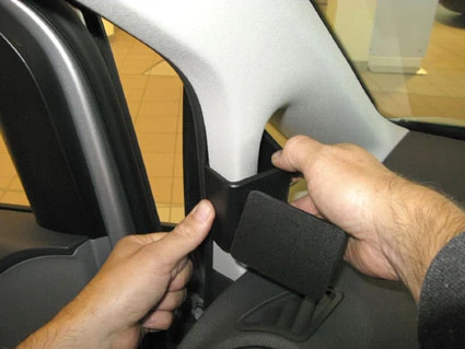 Press the ProClip forward so the angled edge on the upper part hooks around the A-post by the front side window.