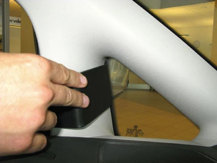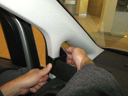 Press the ProClip toward the A-post so it hooks into place properly and the adhesive tapes attach.