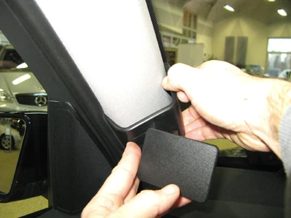 Press the upper part of the ProClip toward the A-post so the angled edge hooks into place properly.