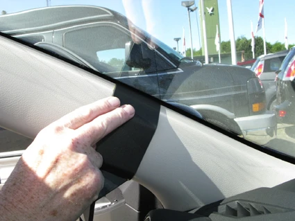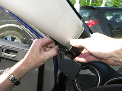 Press the upper part of the ProClip toward the A-post so the angled edge hooks properly in place.