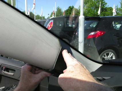 Press the ProClip upward/forward so the angled edge on the upper part hooks around the A-post by the windshield.
