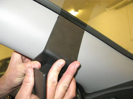 Press the upper part of the ProClip toward the A-post so the angled edge hooks into place properly.