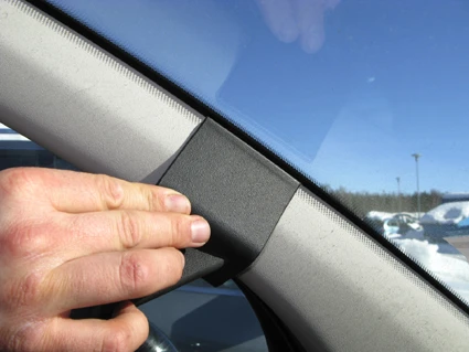 Press the upper part of the ProClip toward the A-post so the angled edge hooks into place properly.