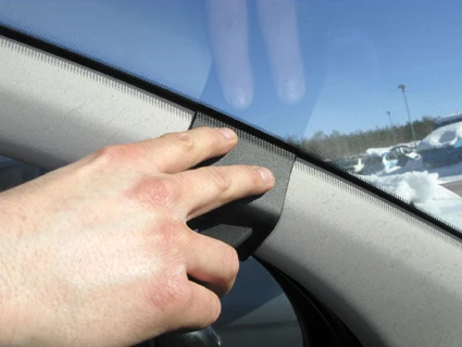 Press the ProClip upward/forward so the angled upper edge hooks around the A-post by the windshield.