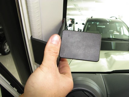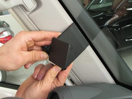 Press the ProClip upward/forward so the angled edge on the right part of the ProClip hooks around the A-post by the windshield.