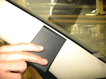 Use the enclosed alcohol pad to clean the area where the ProClip is to be installed. Peel off the adhesive tape cover on the ProClip. Hook the angled lower edge into the upper part of the air vent on the A-post.