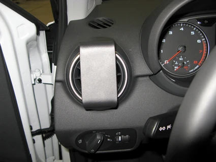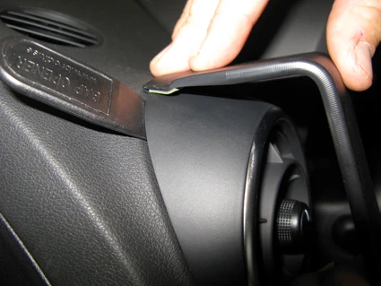 Press upward on the lower part of the ProClip so all of the curved angled edge goes all the way into the gap. Pull out the gap opener. This ProClip can be placed onto any of the air vents, also onto the ones placed on the right side of the steering wheel).