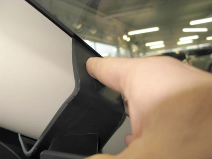 Press the ProClip upward/forward and hook the angled upper edge around the A-post. Press down on top of the ProClip so the angled edge goes all the way into the gap.