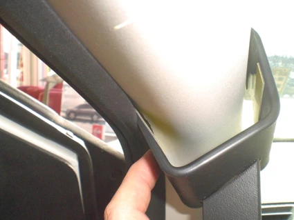 Use the enclosed alcohol pad to clean the area where the ProClip is to be installed. Peel off the adhesive tape covers on the ProClip. Pull out the rubber sealent on the A-post slightly.