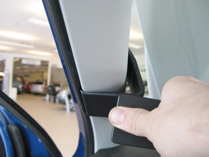Press the ProClip upward/forward so the angled upper edge hooks around the A-post.