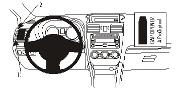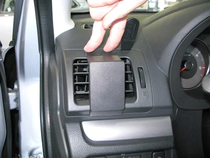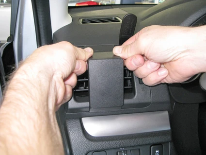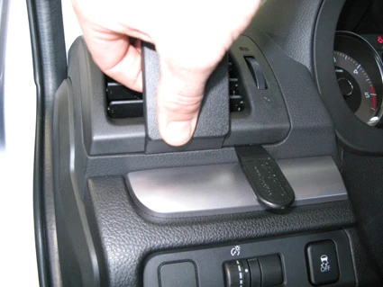 Pull out the gap opener. Press the gap opener into the upper gap between the panel surrounding the air vent and the dashboard. Press the upper part of the ProClip forward. Press the angled upper edge of the ProClip into the gap next to the gap opener.